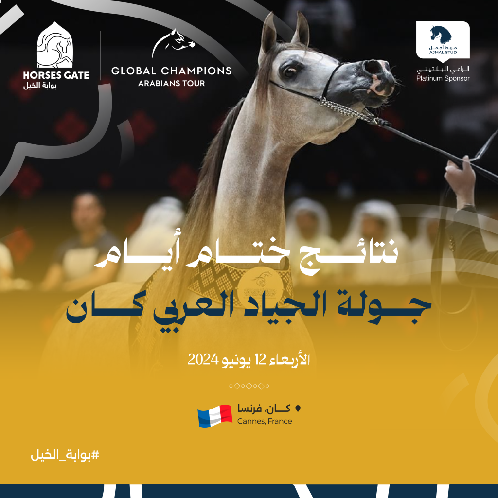 تواصلت مساء أمس محفل اليوم الختامي لبطولة جولة الجياد العربية بفرنسا كان في جولتها الرابعة على التوالي حيث تم اختيار مدينة كان العريقة، لتواكب أهداف ورؤي مبادرة جولة الجياد العربية التي تبحث دائما عن الاناقة والفخامة وتقديم الجديد والمبتكر من خلال اختيار مثل هذه المواقع.